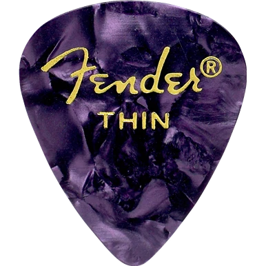 Fender 351 Thin Purp Moto Pick Pack. Comes as a pack of 12 picks. Celluloid is a premier pick material and the cornerstone of the Fender pick collection for decades. Celluloid picks give the traditional feel and a warm, round musical tone. The traditional 351 shape, our most popular pick design, is a perfect accessory for players of versatile styles and techniques.